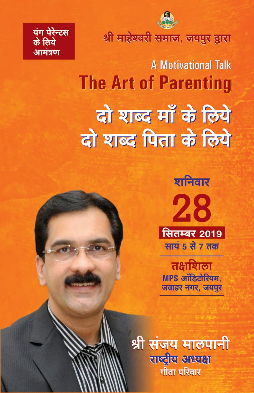 This month THE ART OF PARENTING in the Members' Series organized by Shri Maheshwari Samaj, Jaipur.